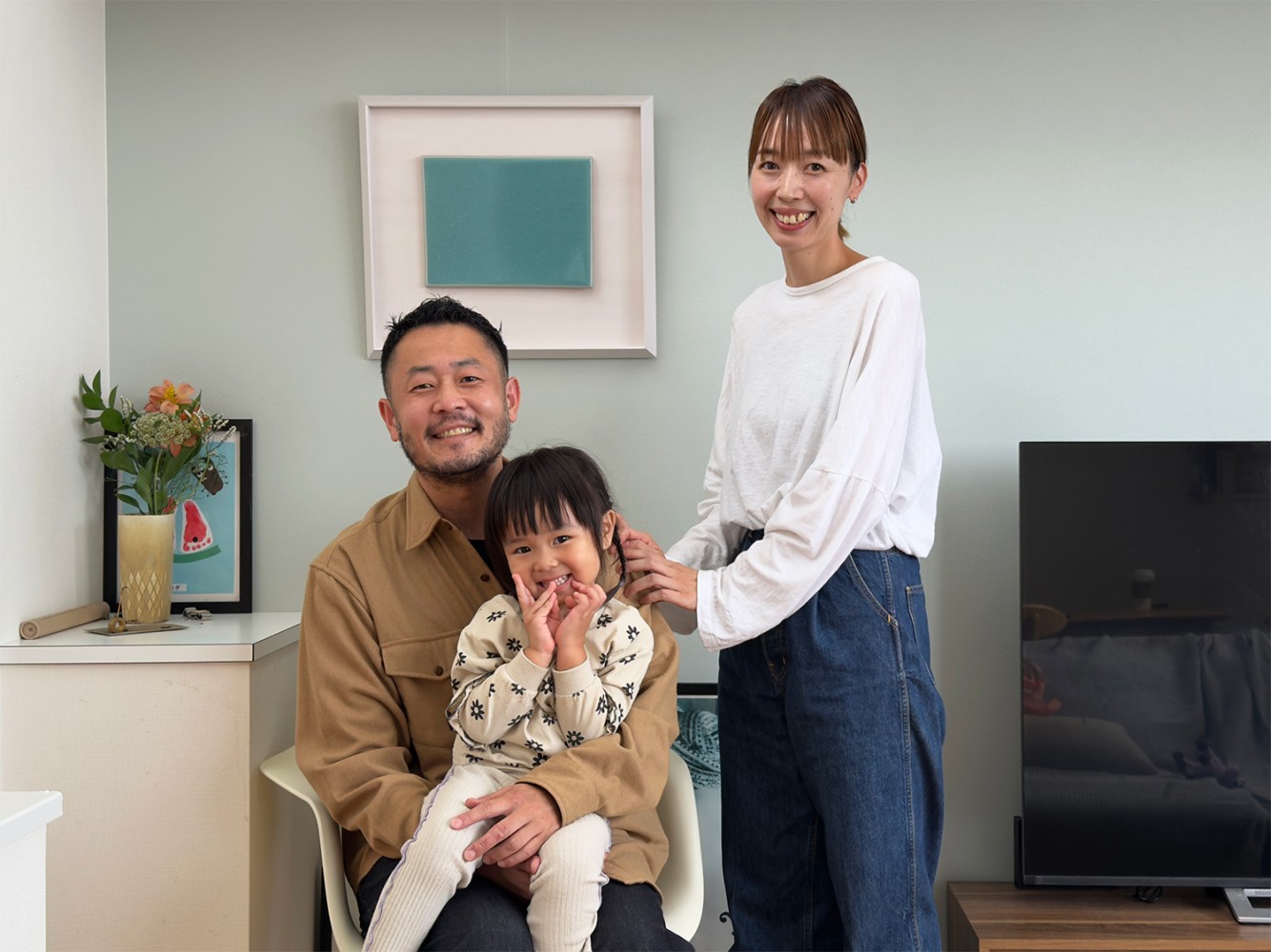 我が家をここに決めたのも、自然光が入るメゾネットのバルコニーが気に入ったからです。光が差し込むところにちょうど広い壁があって、そこになにか飾りたいねと妻と話していたところに、CELADON:FLATと出会いました。