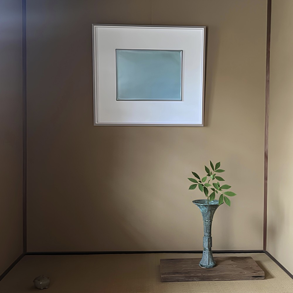 ——仰る通り、自然光で作品を観る、ということが大事ですね。CELADON:FLATを今年の4月に護国寺のお茶会で掛けたのですが、横の窓から自然光が差し、床の間にも良く映えました。